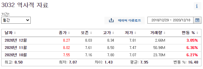2020년 10월부터 12월 까지 월단위로 봤을때 약 16% 상승했습니다.