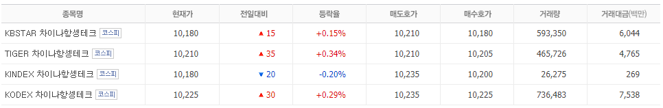 KODEX(코덱스) 보다 시총은 낮지만, 운영보수가 낮고 선물이 없는 TIGER(타이거) 차이나 항셍테크가 좀 더 괜찮아 보입니다.