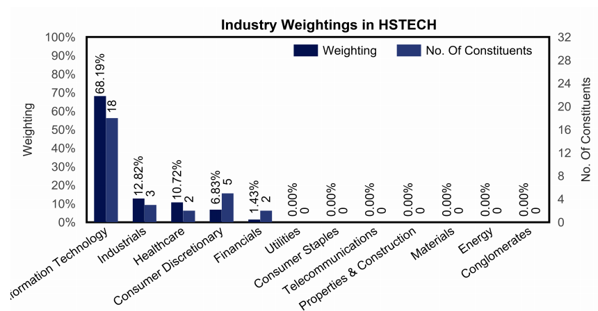 지수개요: 중국 IT, 자유소비재, 산업재, 금융, 헬스케어 섹터 내 클라우드, 디지털, E-커머스, 핀테크 및 인터넷/모바일 사업을 영위하는 기술 기반 기업들을 최대 30종목까지 편입