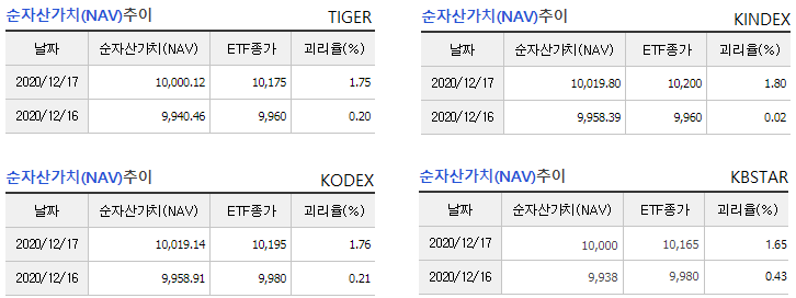 KBSTAR, TIGER, KINDEX, KODEX에서 동시 상장 했으며, 운영규모와 수수료에서 많은 차이를 보이고 있습니다.