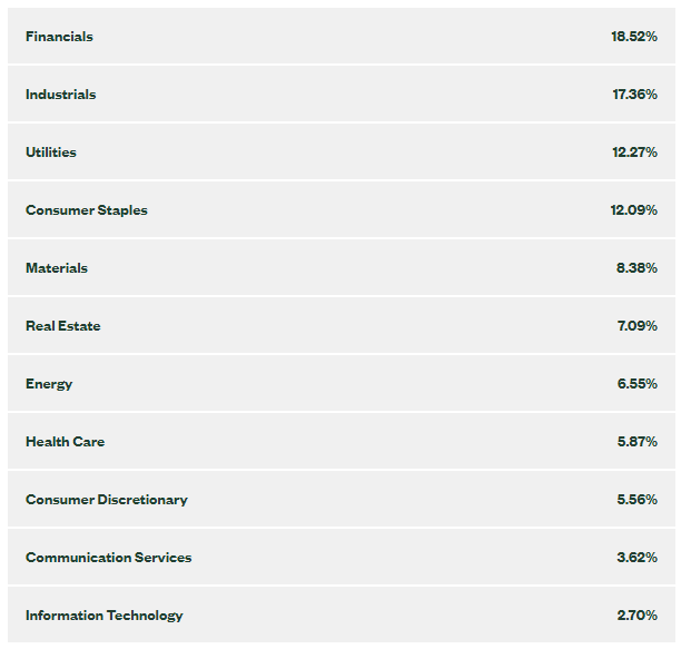 20년간 배당을 지속적으로 늘리고 배당금을 주당가격으로 나눈 것으로 가중치가 적용되니 금융주 쪽으로 가중치가 많이 적용 된 것 같습니다.