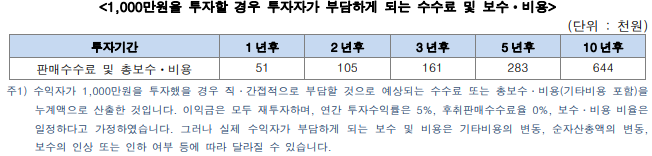 운용보수는 0.40%로 기타보수는 정확하지 않으나 투자설명서에는 0.51%로 운용보수가 계산되어 있습니다. 1,000만원 투자시 1년 51,000원의 보수가 필요하다고 되어 있습니다.