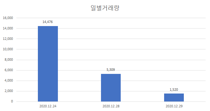 상장된지 얼마 안됐기 때문에 추이를 지켜봐야 겠지만, 거래량은 감소추세입니다.