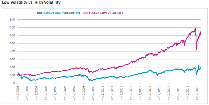 고변동과 저변동을 비교시 저변동의 수익이 좋았다는 그래프를 제공하고 있습니다.