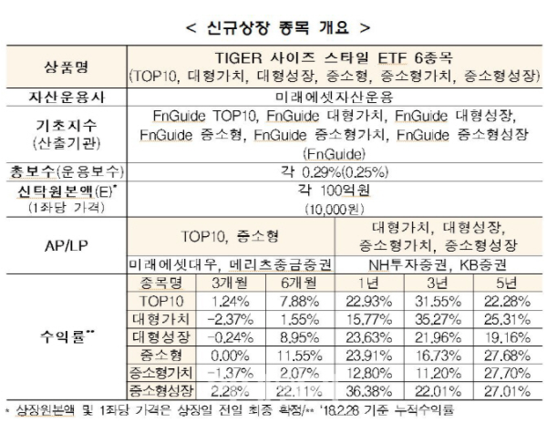 상품출시당시 TIGER 사이즈 스타일 ETF 6종목으로 출시된 상품입니다.