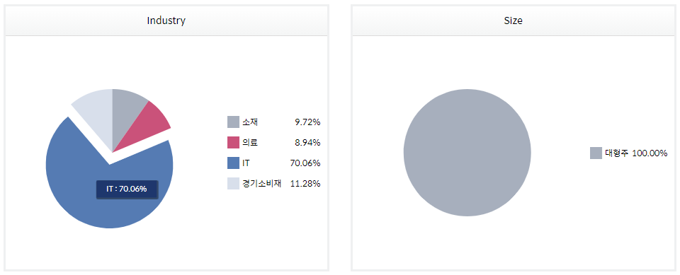 IT 부분이 약 70% 이며, 대형주로만 구성되어 있습니다.