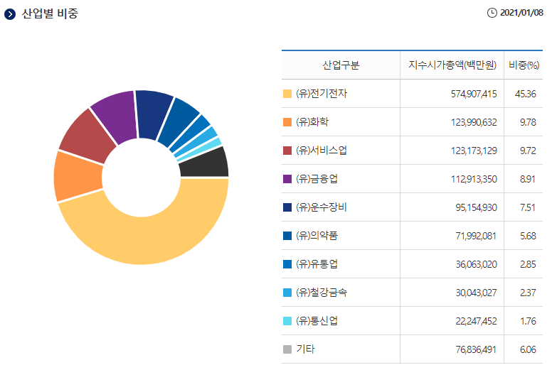 - 유가증권시장에 상장된 전 종목을 10개 산업군으로 분류 |