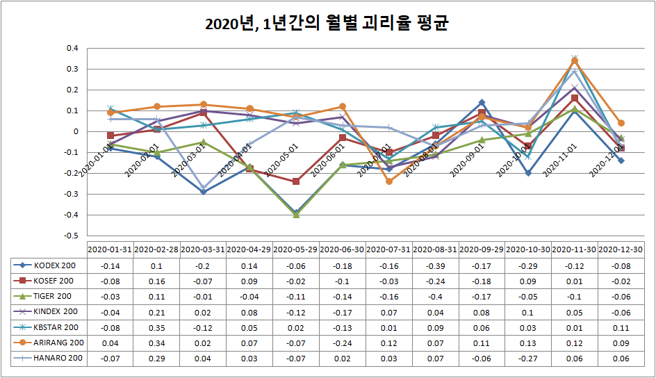 위 표에 보이는 9개의 ETF 중 거래량을 보면 TREX 200 과 파워 200은 너무 낮아 제외를 했습니다.