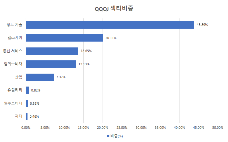 기술섹터의 비중이 제일 크고 그다음 헬스케어 순입니다.
