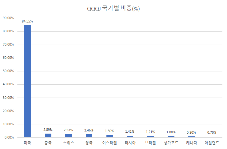 대형주 위주의 QQQ에서 중형주 위주의 QQQJ를 더해 포트폴리오를 구성하기 위한게 아닌가 하고 추측합니다.